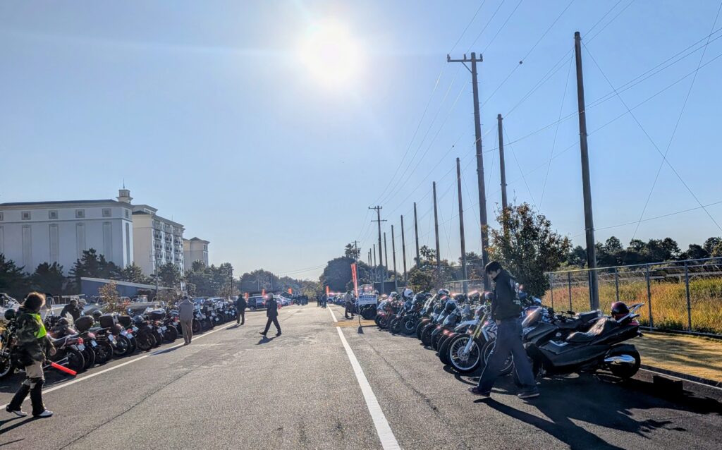 会場入り口ではライダーの皆さんはバイクを降りて駐車スペースまでひいていってもらったにもかかわらず、皆さん協力的で主催者の方も驚いていました!