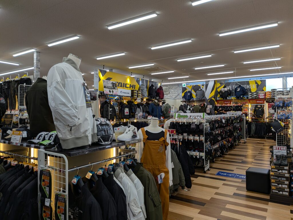 ヘルメット(国内外ブランド)、ライディングジャケット、カジュアルウェアなどの装備品