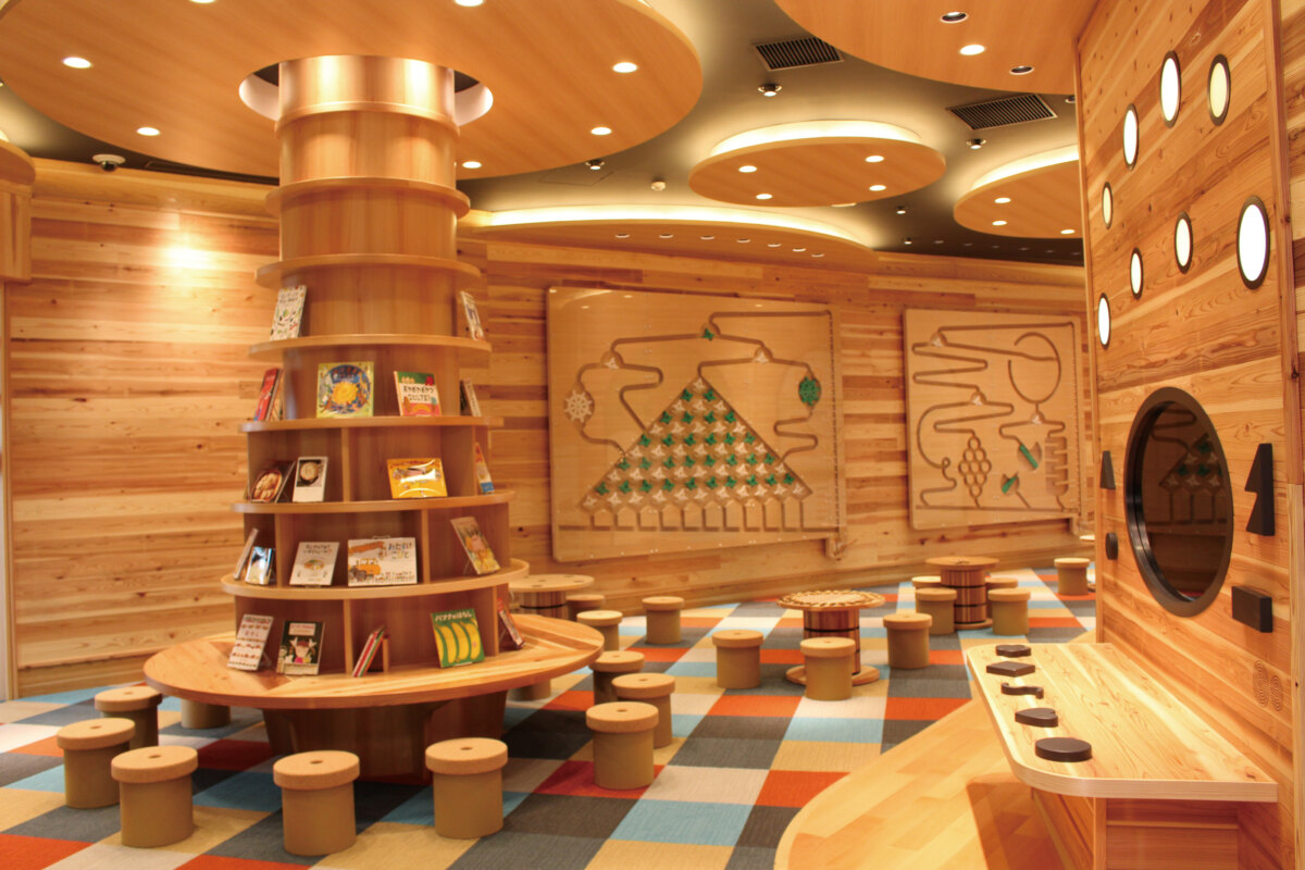天竜杉を使用した知育玩具やダイナミックな遊具など、こどもがわくわくする遊びがいっぱい