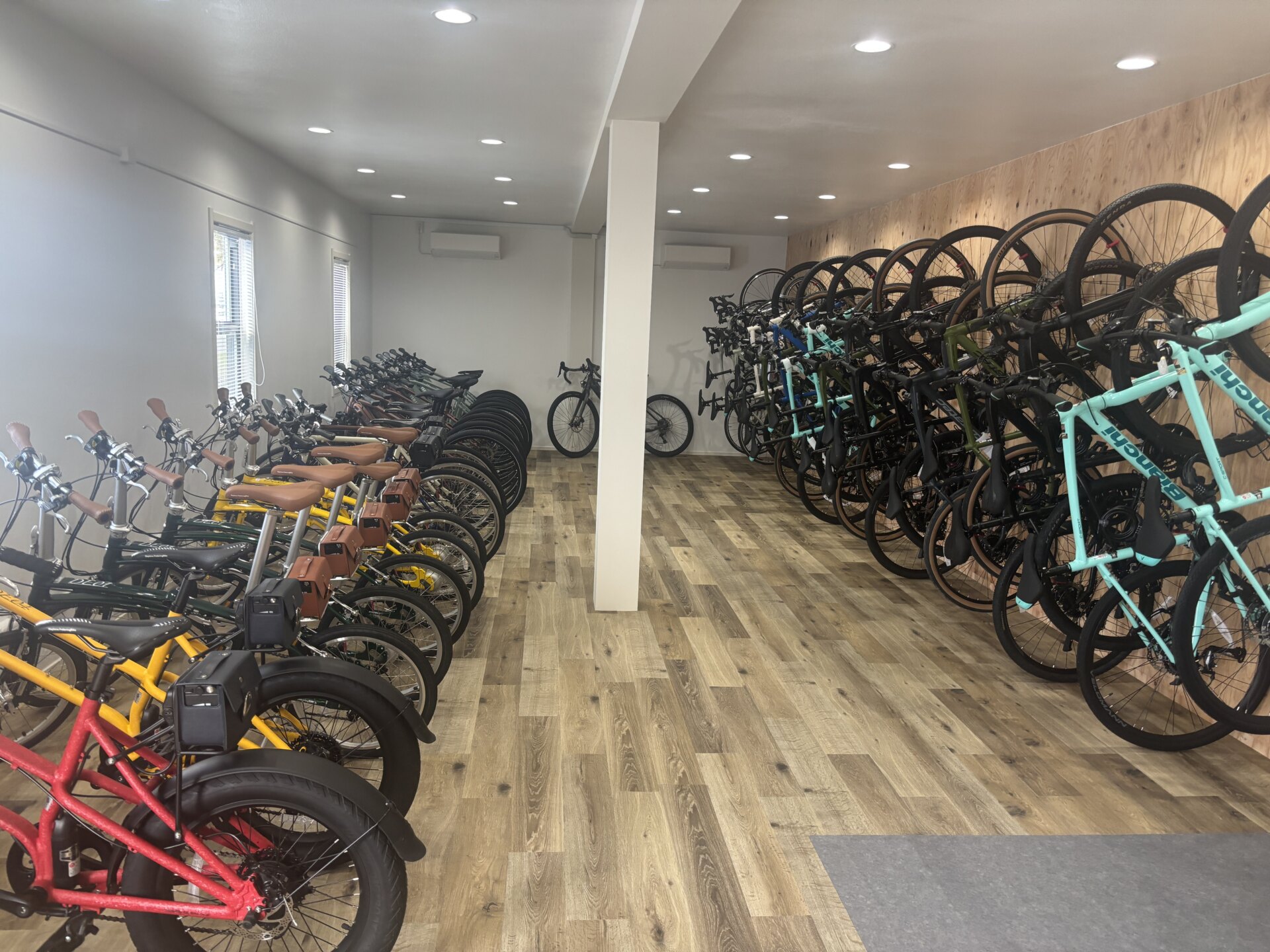 レンタサイクルは、クロスバイクを中心に、ロードバイクやE-Bikeまで幅広くラインナップ。