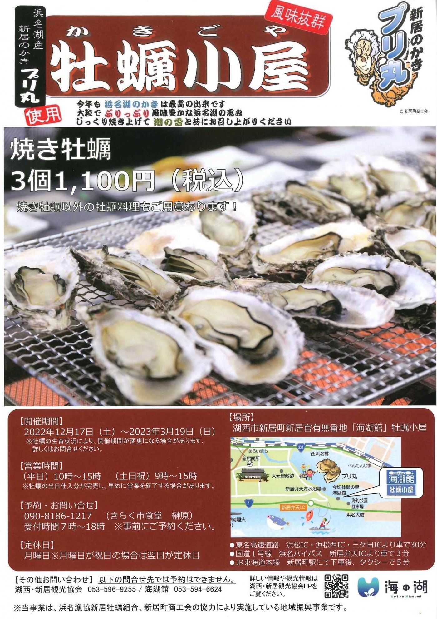 浜名湖産!湖西市の牡蠣小屋で、新居の牡蠣「プリ丸」が楽しめます。