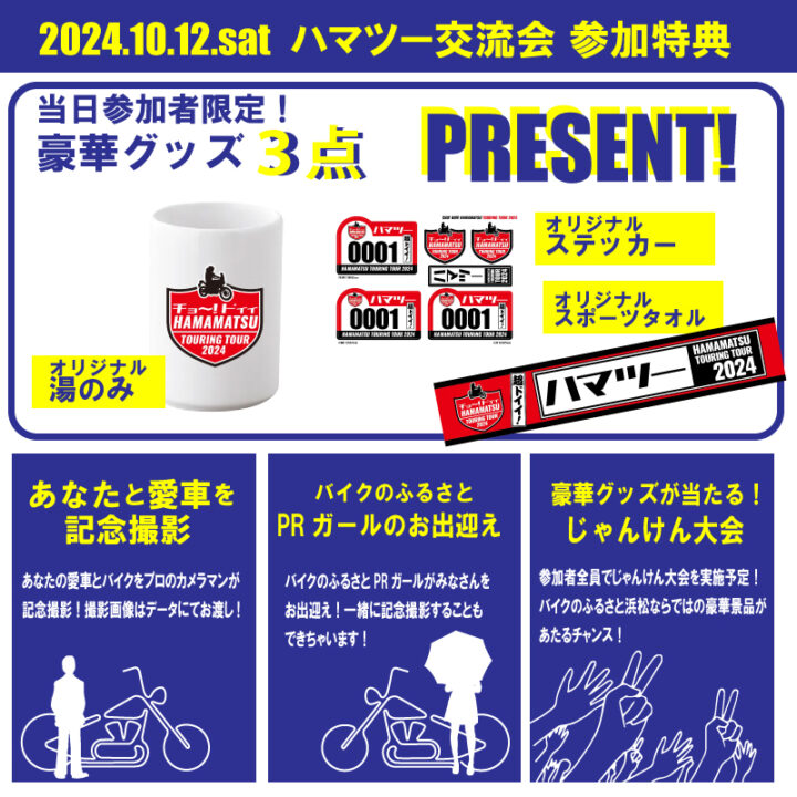 「バイクのふるさと浜松2024」の開催にあわせ、当地域に訪れるバイクライダーの交流と地域内周遊促進のため、新たなライダー向け交流サービスを開催します。
