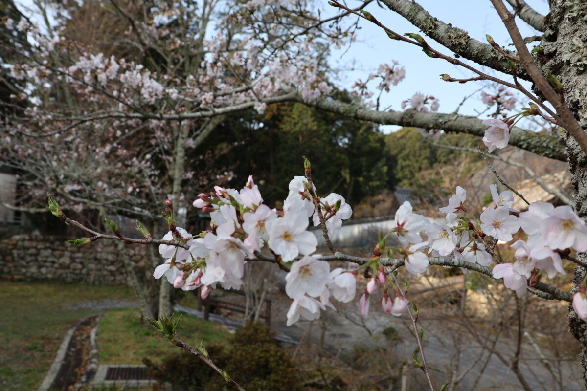 ・本興寺:本興寺公園は3分咲、参道と門前はつぼみ