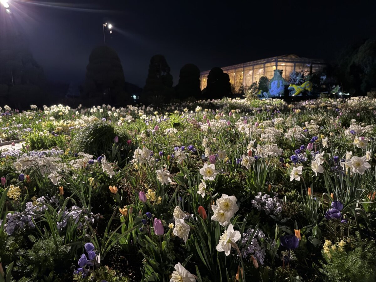 「桜とチューリップの庭園」や大温室「クリスタルパレス」、大噴水ショー、花々を眺めながら移動できるフラワートレインなど、ご家族やカップルにぴったりの見どころが満載!