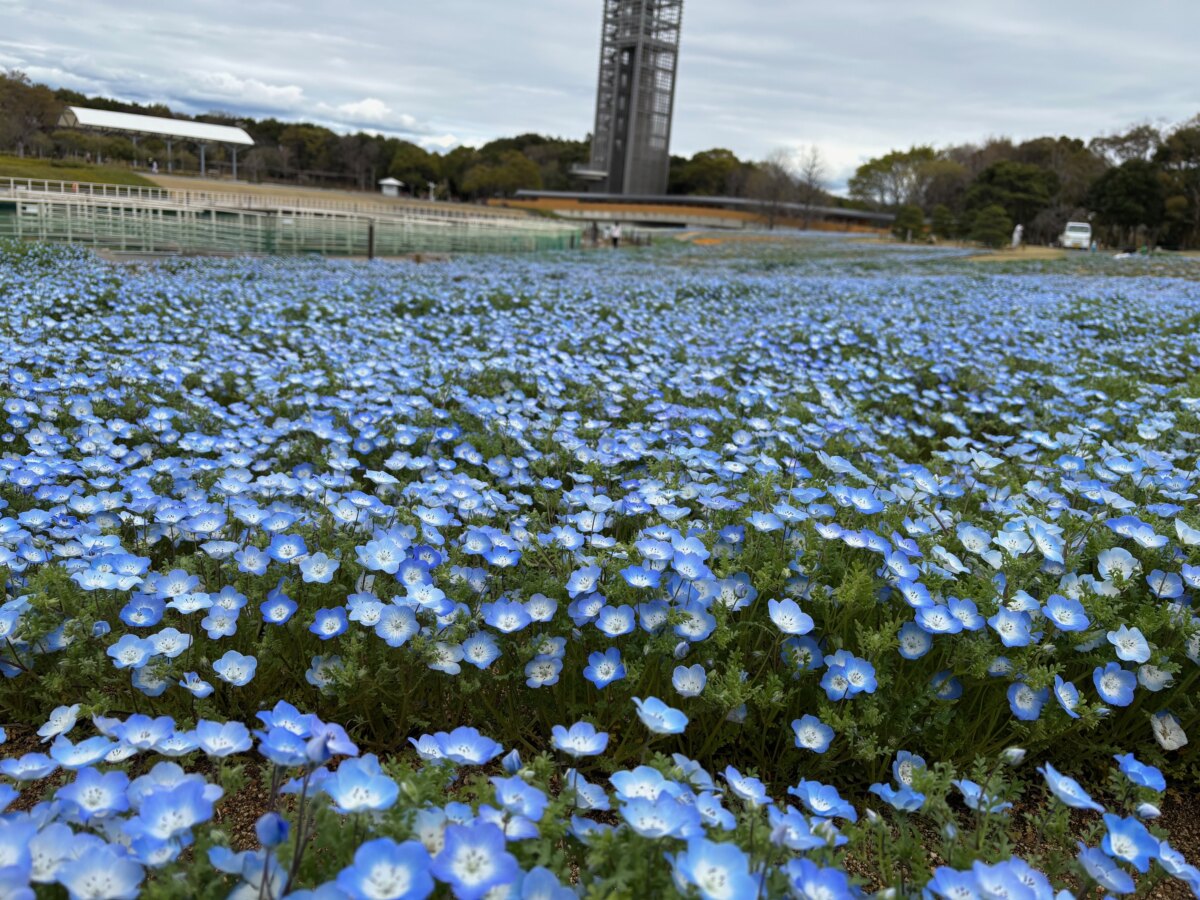 4/2日現在、3,000㎡の広大な「花ひろば」では30万本のネモフィラの開花が進んでいます。