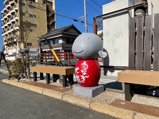 ▲駐車場には当店のゆるキャラ?「うなぎ地蔵」が皆様をお出迎えします。