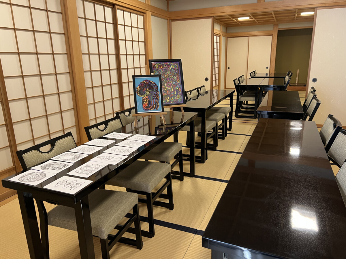 お寺で瞑想しながら、ぬり絵を使って自分だけの御朱印づくりをしていただき、お持ち帰りいただけます。