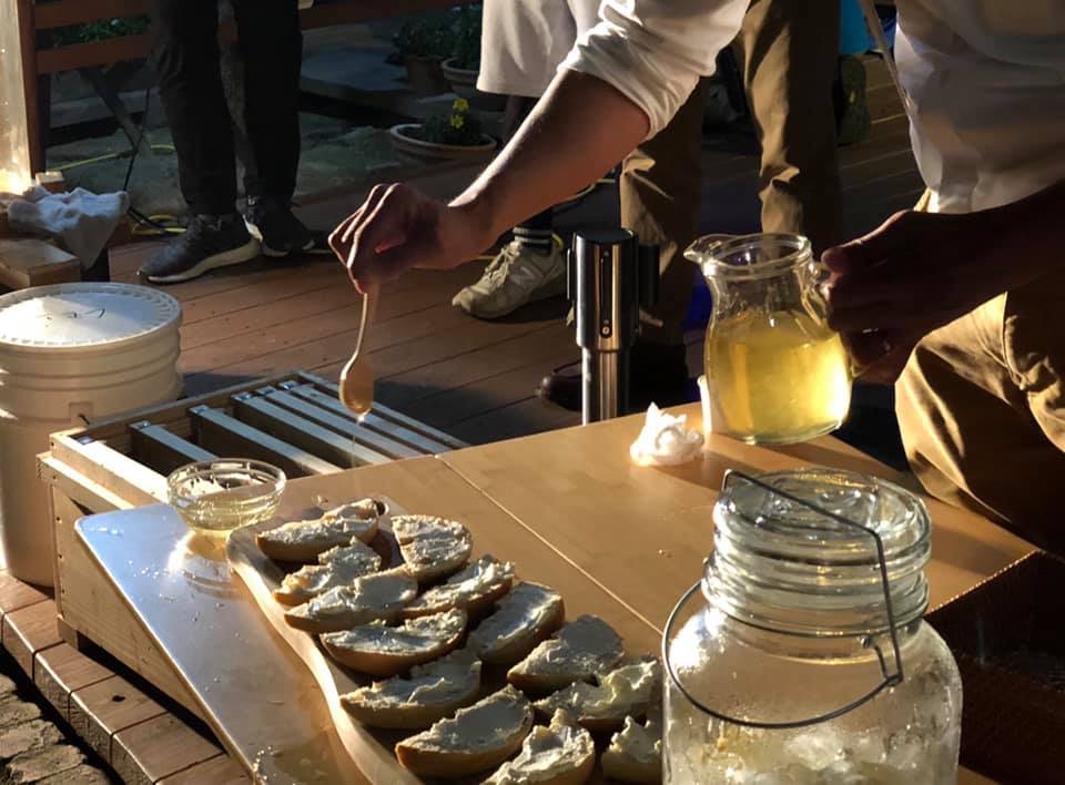 ゴール後は長坂養蜂場さんで、三ヶ日みかんの花などからミツバチがつくりだした「三ヶ日みかん蜂蜜」の採蜜実演と、採れたての新蜜を味わう試食会も体験♪