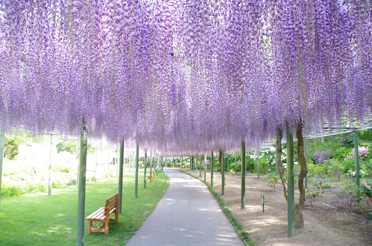 世界一美しい「桜とチューリップの庭園」をはじめ、藤棚のライトアップ、バラが咲き乱れる「ローズガーデン」など、春を彩る草花が咲き誇り、憩いの空間を演出します🌸