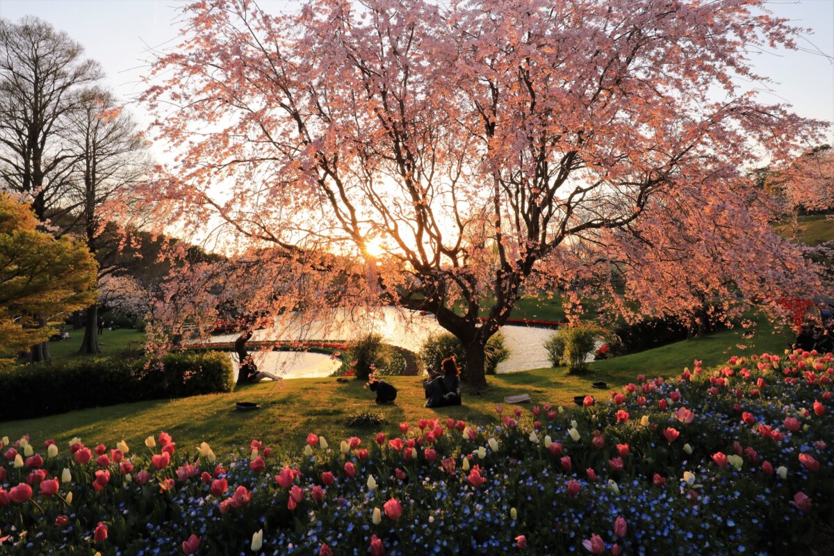 桜とチューリップの庭園