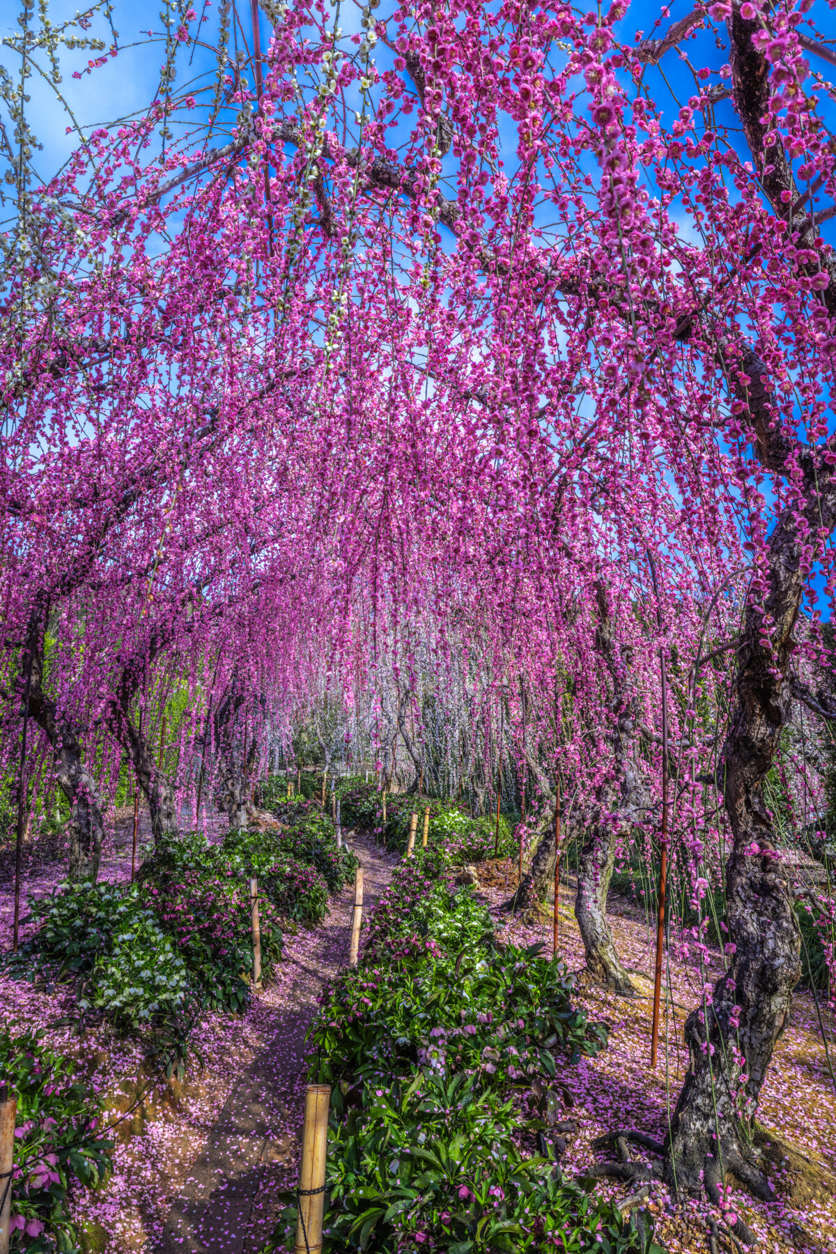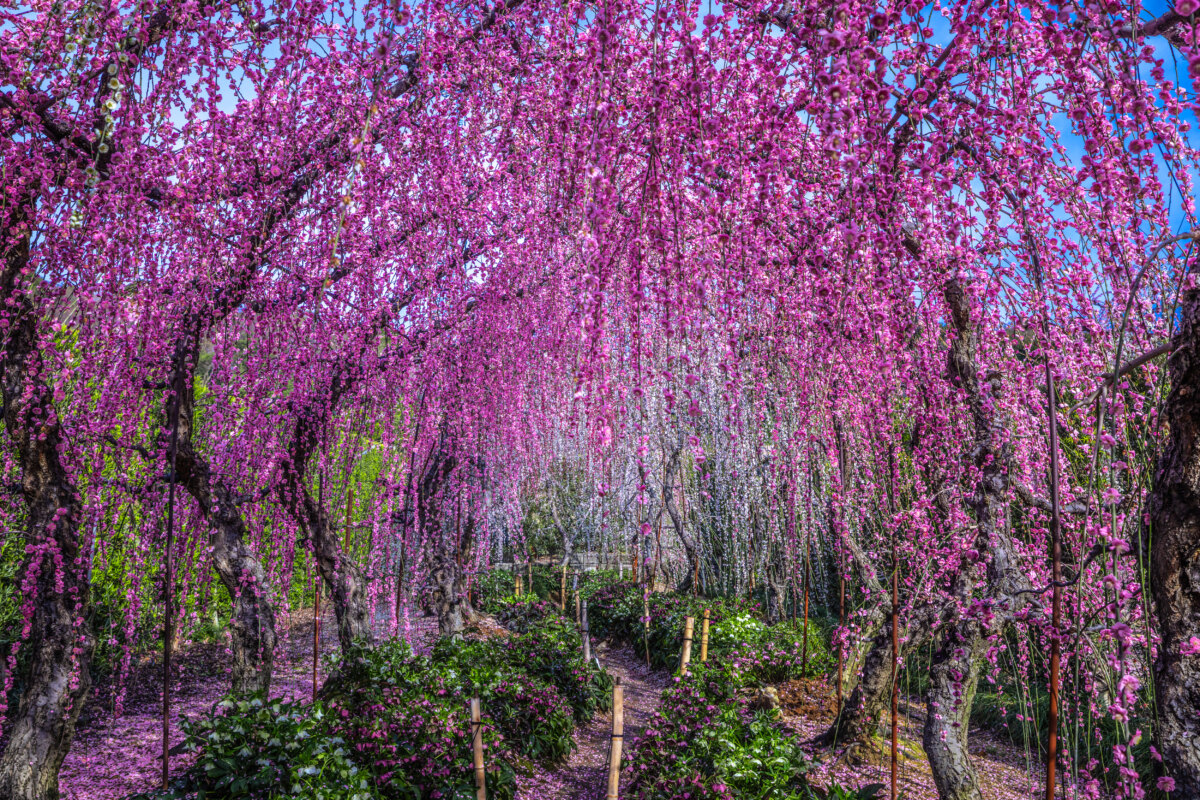 樹齢は50年以上、樹高も5m以上のものまで350本が林立し、中でも竜の体内をイメージした花のシャワーの中を通り抜けるトンネルは人気があります。