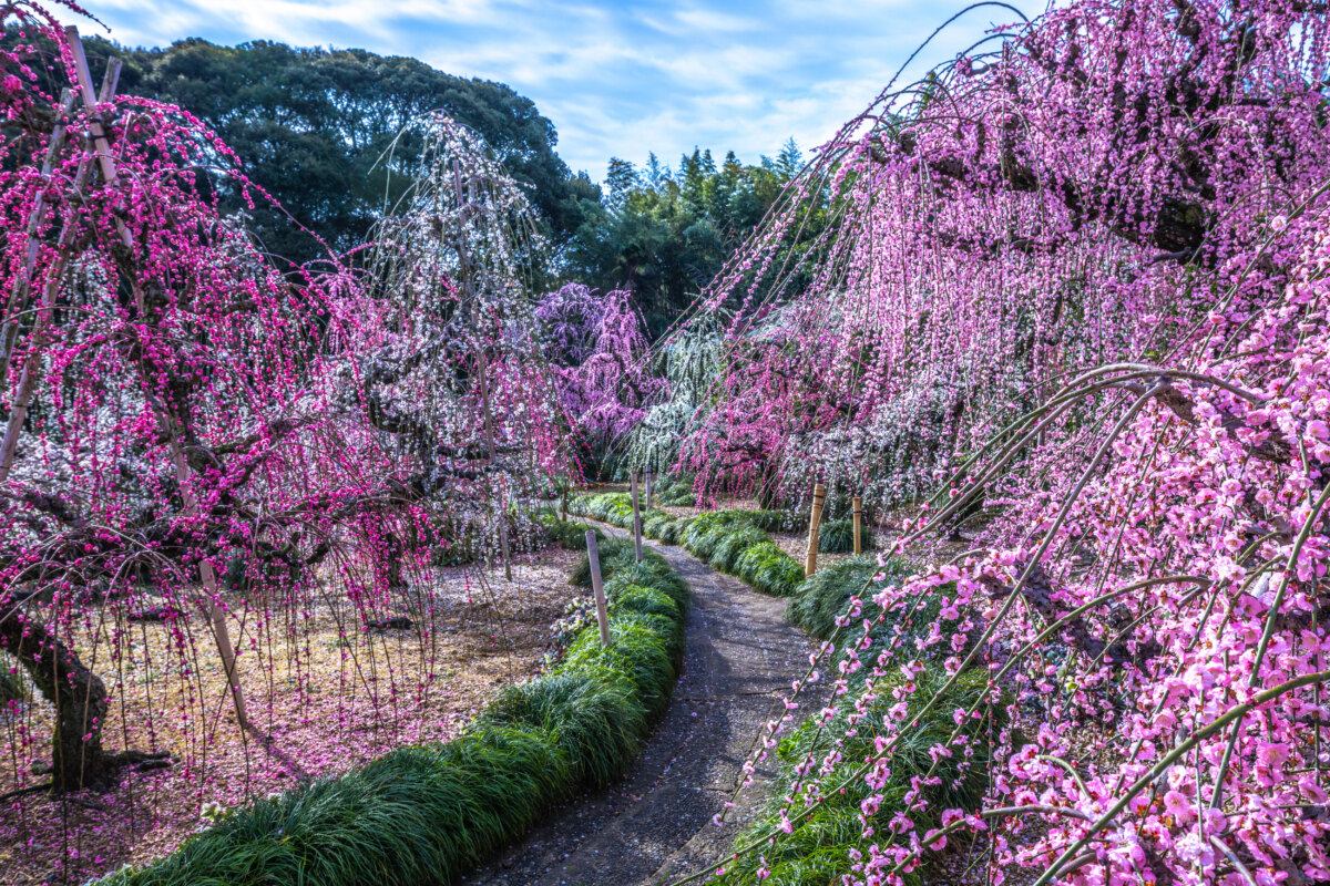 園内5000平方メートルに植栽されている梅はすべてしだれ梅です。