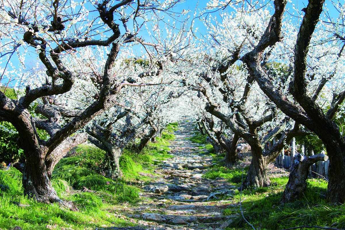 竜が雲をつかみ天に昇る姿を想像させる梅の木の仕立て方は、ここでしか見られない特別な景色です。