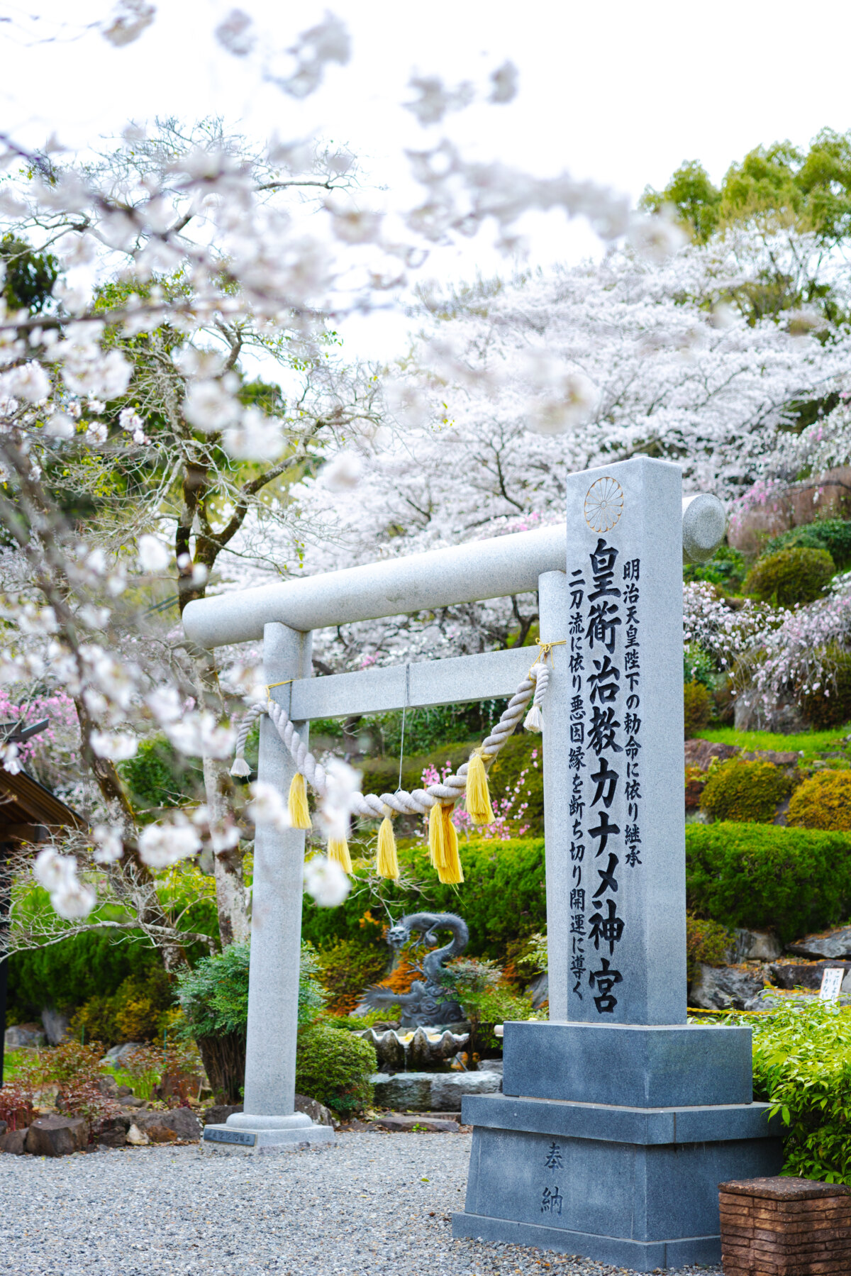 1本の木に3色の花を咲かせる源平しだれ桃や山桜、しだれ桜といった春の花々が境内を美しく彩ります🌸