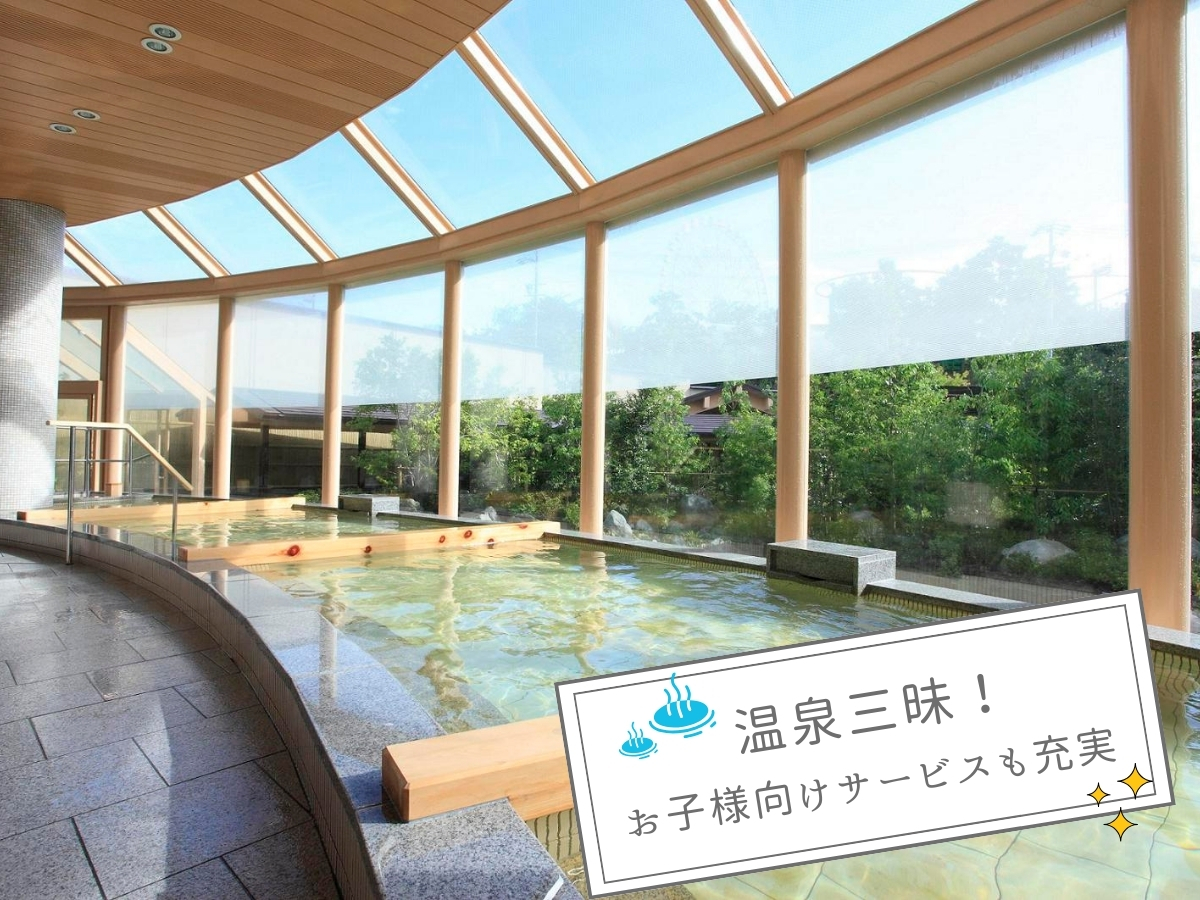 さらに、館内には10か所以上の多彩な温泉に加え、ご宿泊者専用の露天風呂「ひとと季の湯」も完備。花めぐりや動物園、遊びのあとの体をゆったり癒せます。