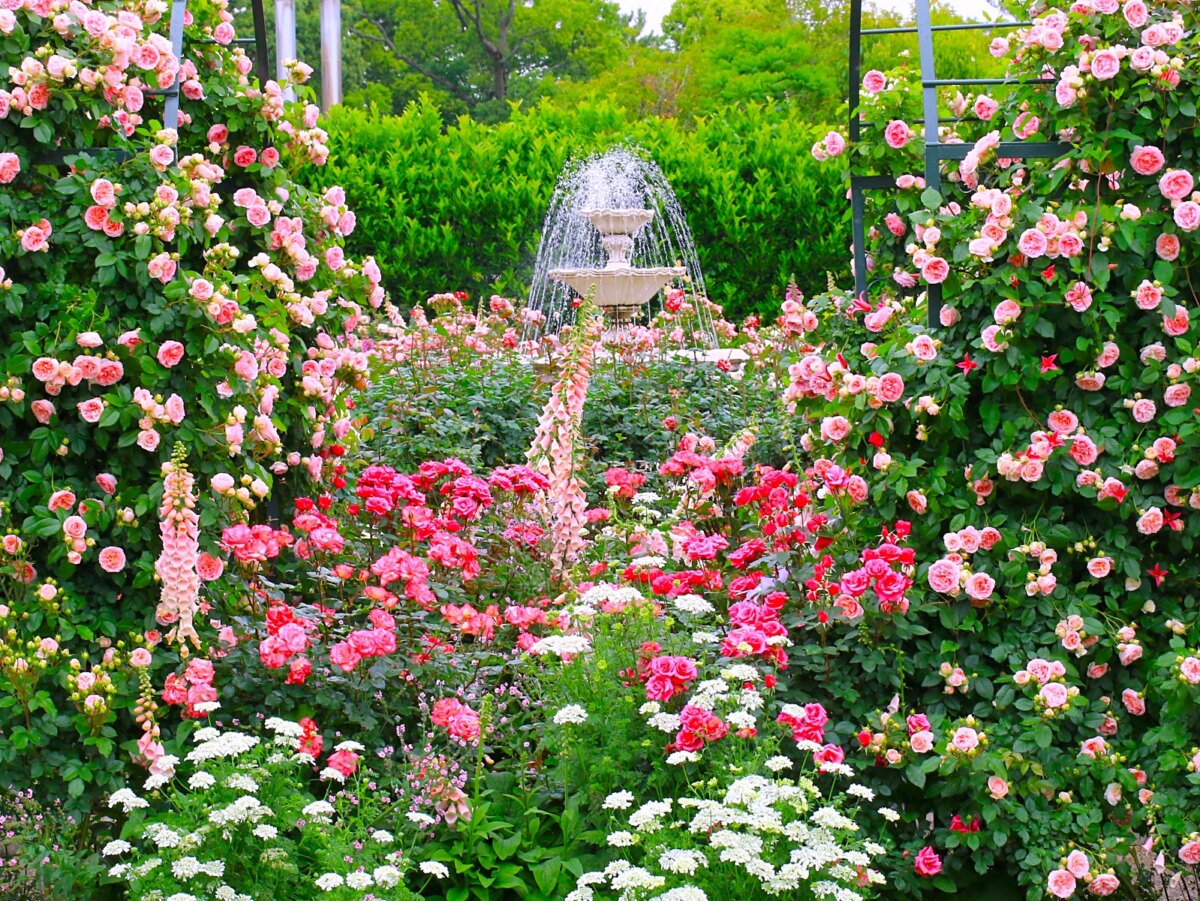 ガラス張りの大温室「クリスタルパレス」や大噴水ショーなど、写真に残したくなるフォトジェニックなスポットも充実。