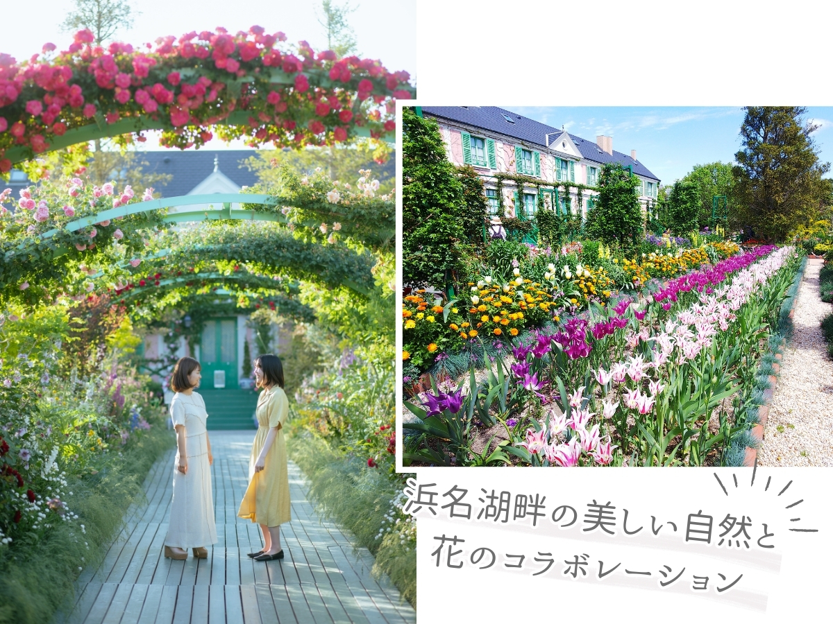 浜名湖畔に広がる広大な園内では、季節の花々が咲き誇り、開放感あふれる風景を楽しめます。