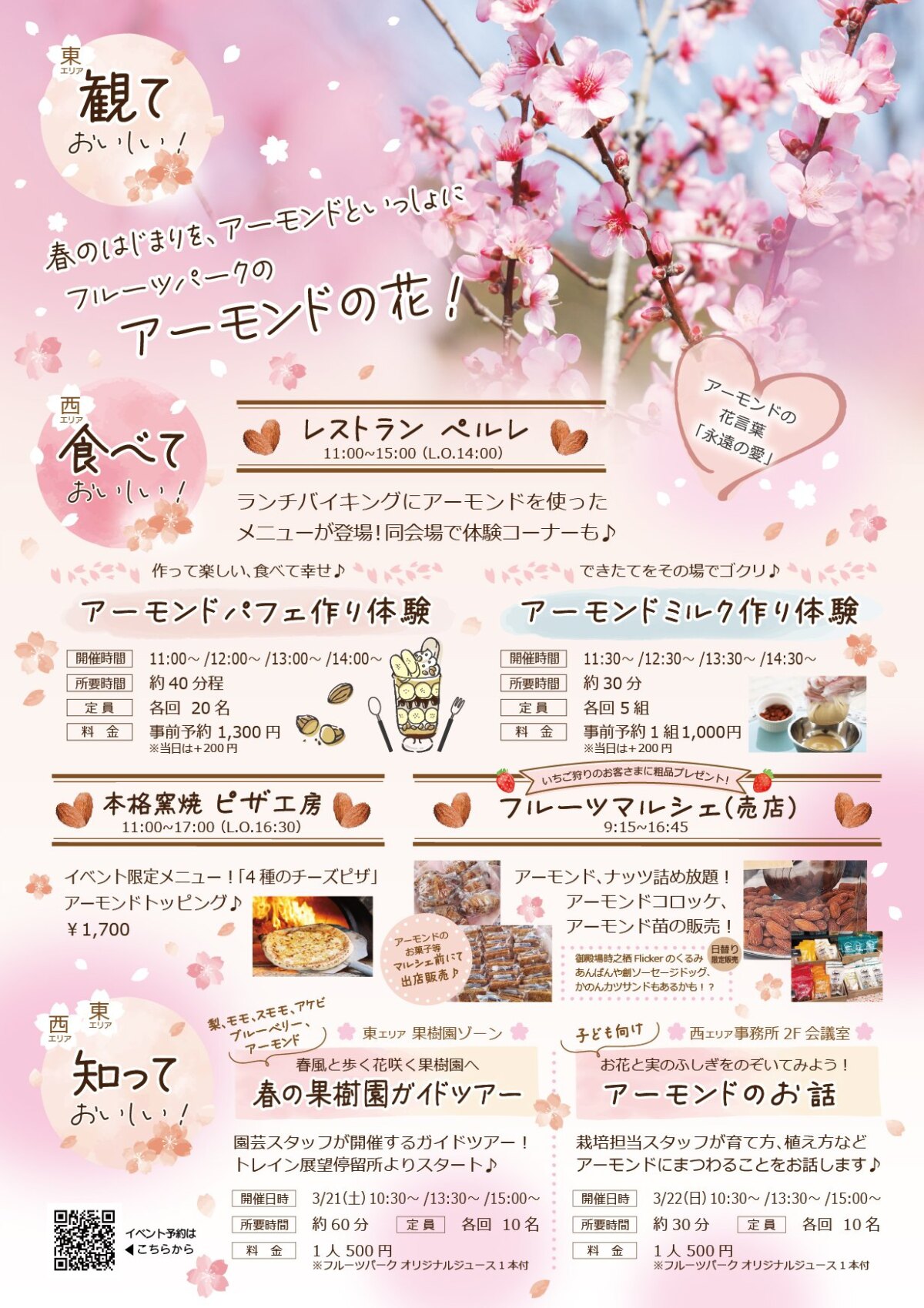 「春の果樹園ガイドツアー」や「子ども向け アーモンドのお話」などのイベントを開催!