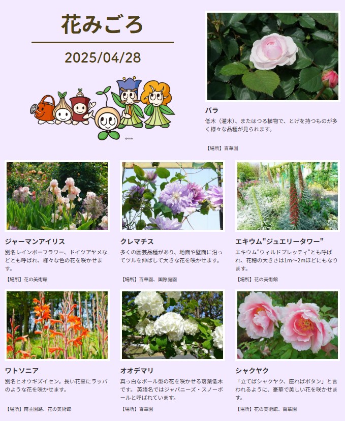 過去記事:【5/9 花の見頃情報】バラの花が続々開花!華やかな風景をお楽しみください 2025.05.09|花見頃情報