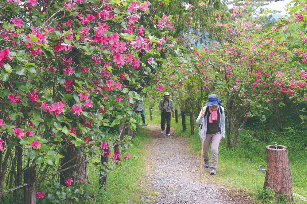 小高い山の上にある園内には、約4,000株の渋川ツツジが自生しています。一般的なツツジとは異なり、木は約5mほどと背が高く、華やかな紅紫色の花が特徴です。