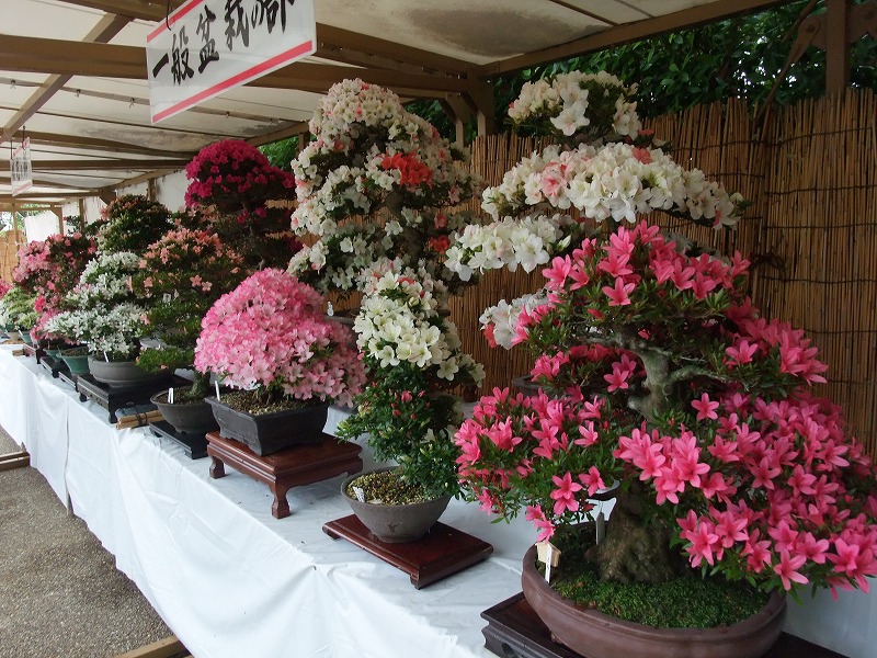 展示プラザにて、色鮮やかなサツキの盆栽を部門別に展示します。
