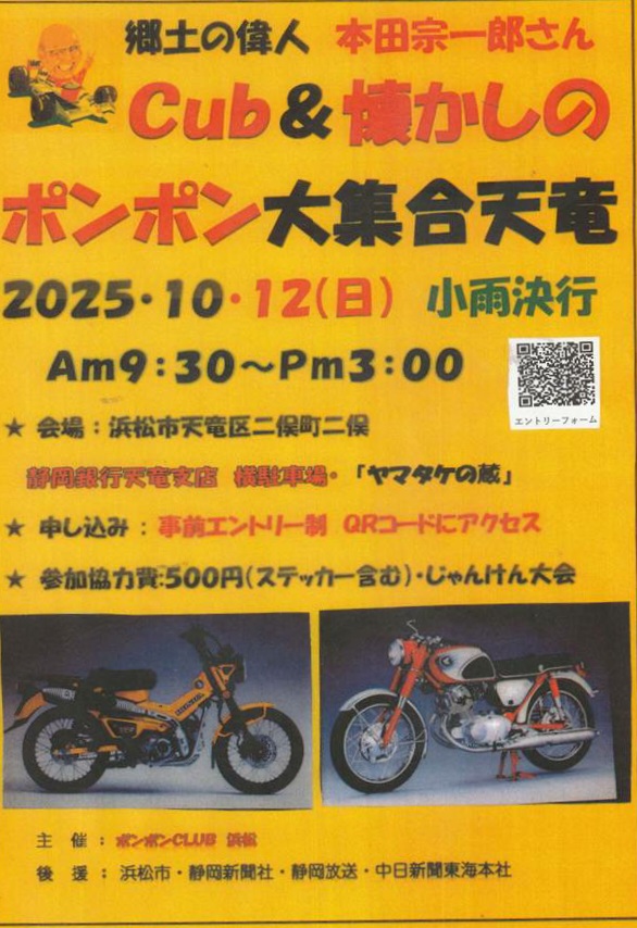 【イベント案内】2025年10月12日(日)Cub & 懐かしのポンポン大集合 in 天竜「ヤマタケの蔵」にて開催!!