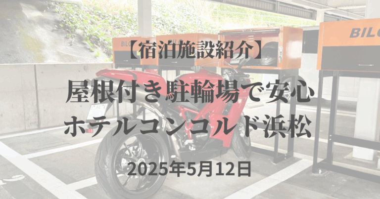 こんにちは🌞サイト管理人です。 「ホテルコンコルド浜松」では、愛車と一緒に安心・快適にご宿泊いただけるライダー向けご宿泊プランの販売をスタートしたということで取材してきました! バイクも「泊まりたい」と言い出す快適駐輪場 … 続きを読む 【ライダー向け宿泊プラン】屋根付き駐輪場がうれしい「ホテルコンコルド浜松」