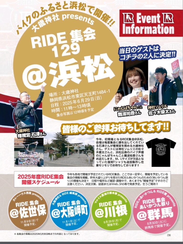 【イベント情報】2025年6月29日RIDE集会129@浜松 大歳神社で開催