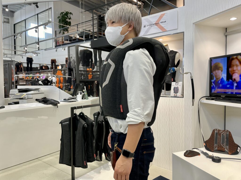 実際に膨らんだエアバッグを触らせてもらいましたが、特に胸部と脊椎をしっかり守る構造になっていて、衝撃から体を包み込むような安心感がありました。