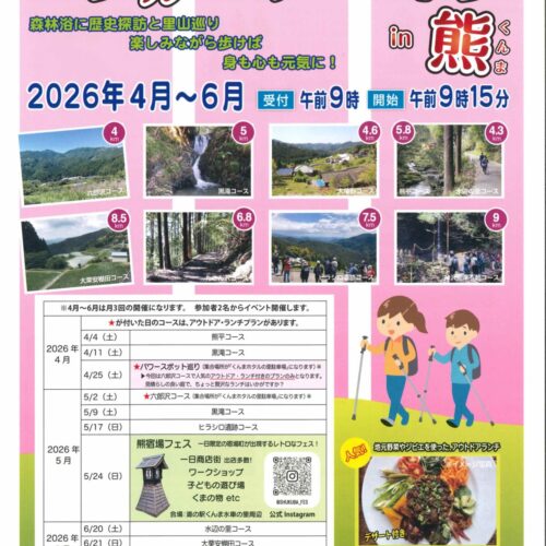 【参加予約承り中】4~6月 森林浴に歴史探訪と里山巡り ノルディック・ウォーク in 熊