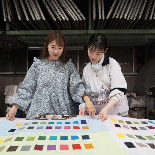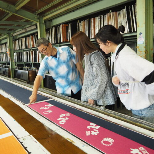 日本でも有数の手捺染の工場である武藤染工さんでは、さまざまな染色技法を手がける工場見学と手捺染の体験をすることができます。
