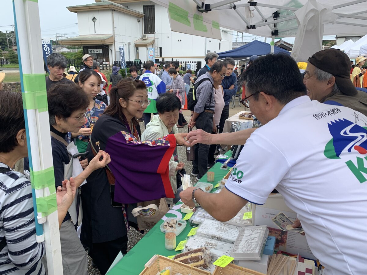 販売ブースでは、飲食・地元物産・花苗の販売の他、宮城県気仙沼物産市(会場:タキヤ金物店)、長野県木曽町の物産販売(会場:関所駐車場)もあります。
