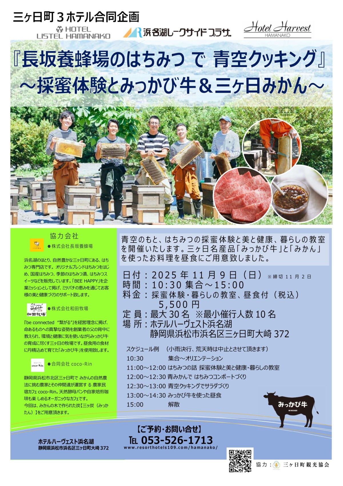11月9日にホテルハーヴェスト浜名湖にて、はちみつの採蜜体験と美と健康・暮らしの教室を開催いたします。