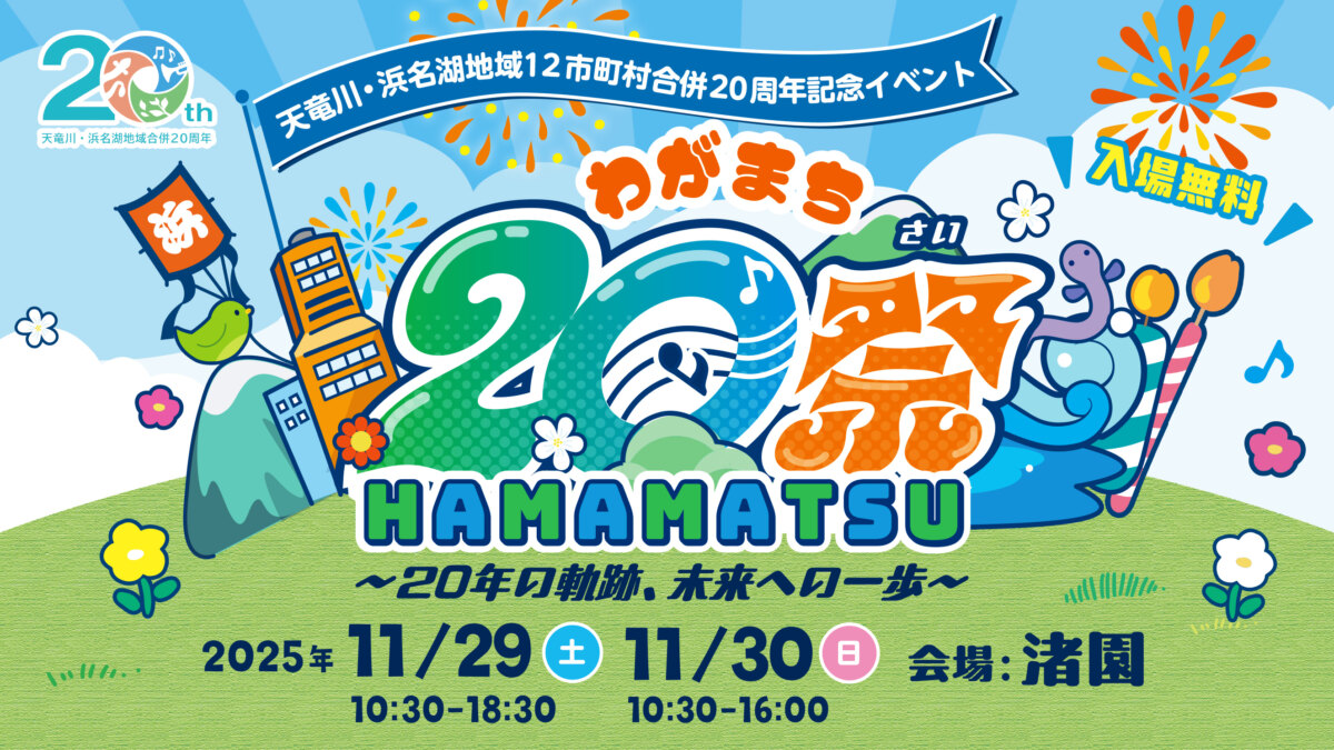 本年浜松市は、天竜川・浜名湖地域の12市町村合併から20周年を迎えました。