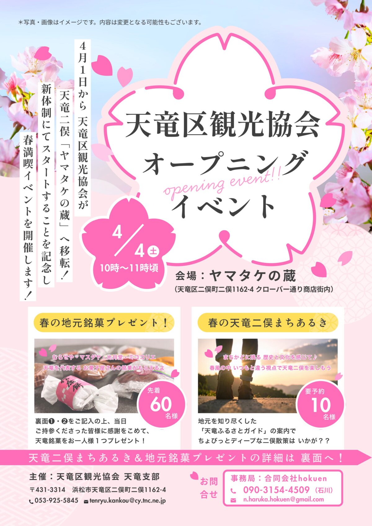 新体制にてスタートすることを記念し、春を満喫できるオープニングイベントを開催しますので、是非お越しください🌸