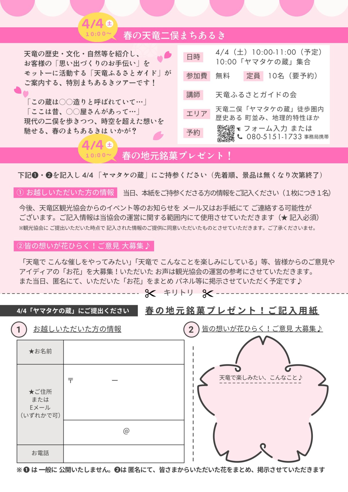 4月4日 10:00~11:00(予定) 10:00「ヤマタケの蔵」集合