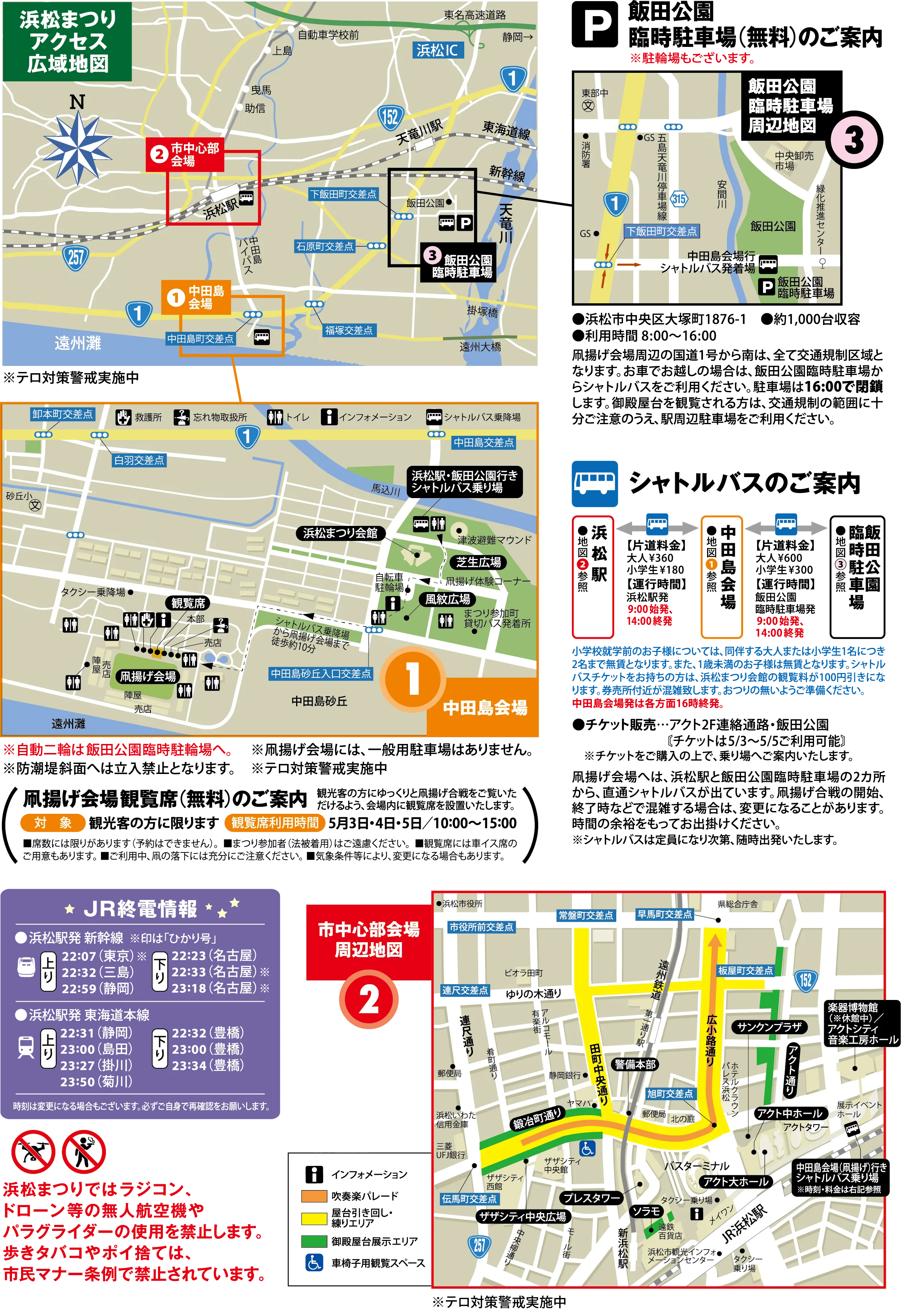 浜松まつり公式ウェブサイト|浜松まつり組織委員会 ENGLISH PLAY PAUSE 浜松まつりの歴史 凧揚げ合戦 御殿屋台引き回し 会場マップ 浜松まつりホーム 会場マップ 浜松まつり会場のご案内 浜松まつりではラジコン、ドローン等、無人航空機の使用を禁止します。 歩きタバコやポイ捨ては、市民マナー条例で禁止されています。