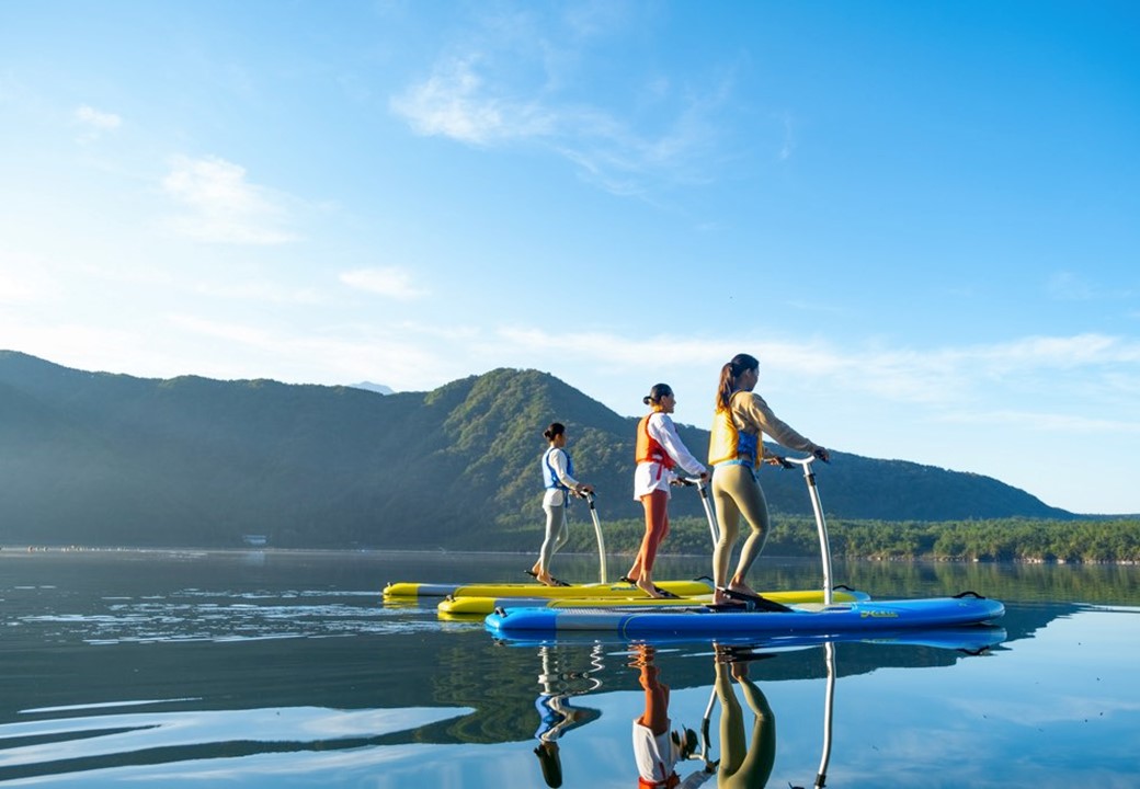 「ペダルSUP&カヤック」は、私服で楽しめる手軽さと、サイクリングのようにスイスイと湖面を進む爽快感が特徴の最先端アクティビティです。
