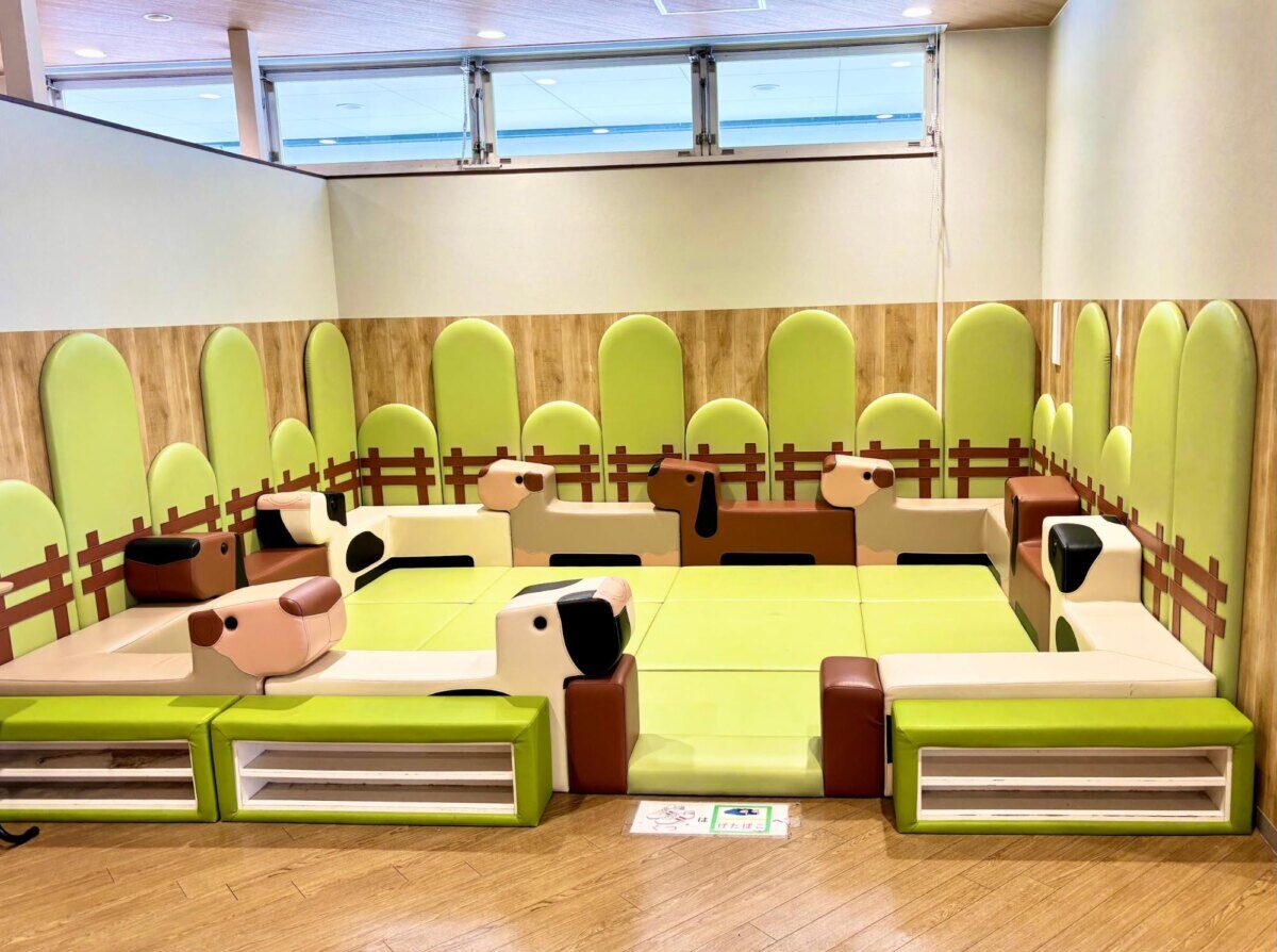 場所は「湖の見えるフード館」の中にあり、ふかふかのクッションが敷き詰められているため、小さなお子さんもリラックスして過ごせます。