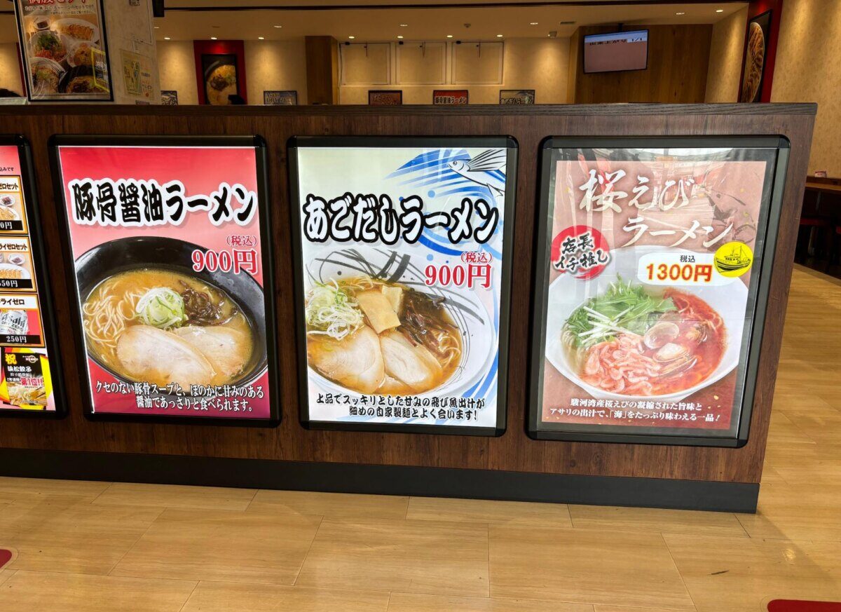 「らーめん 浜名湖そだち」では、スープに海老から抽出したエキスを使用した店長イチ押しの「桜えびラーメン」、こだわりの麺で仕上げる「豚骨醤油ラーメン」や「飛魚(あご)だしラーメン」など、本格派の味を楽しめます。