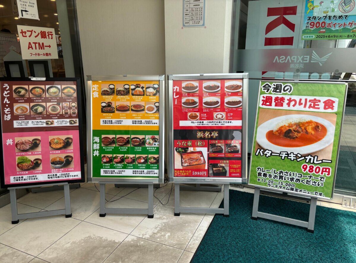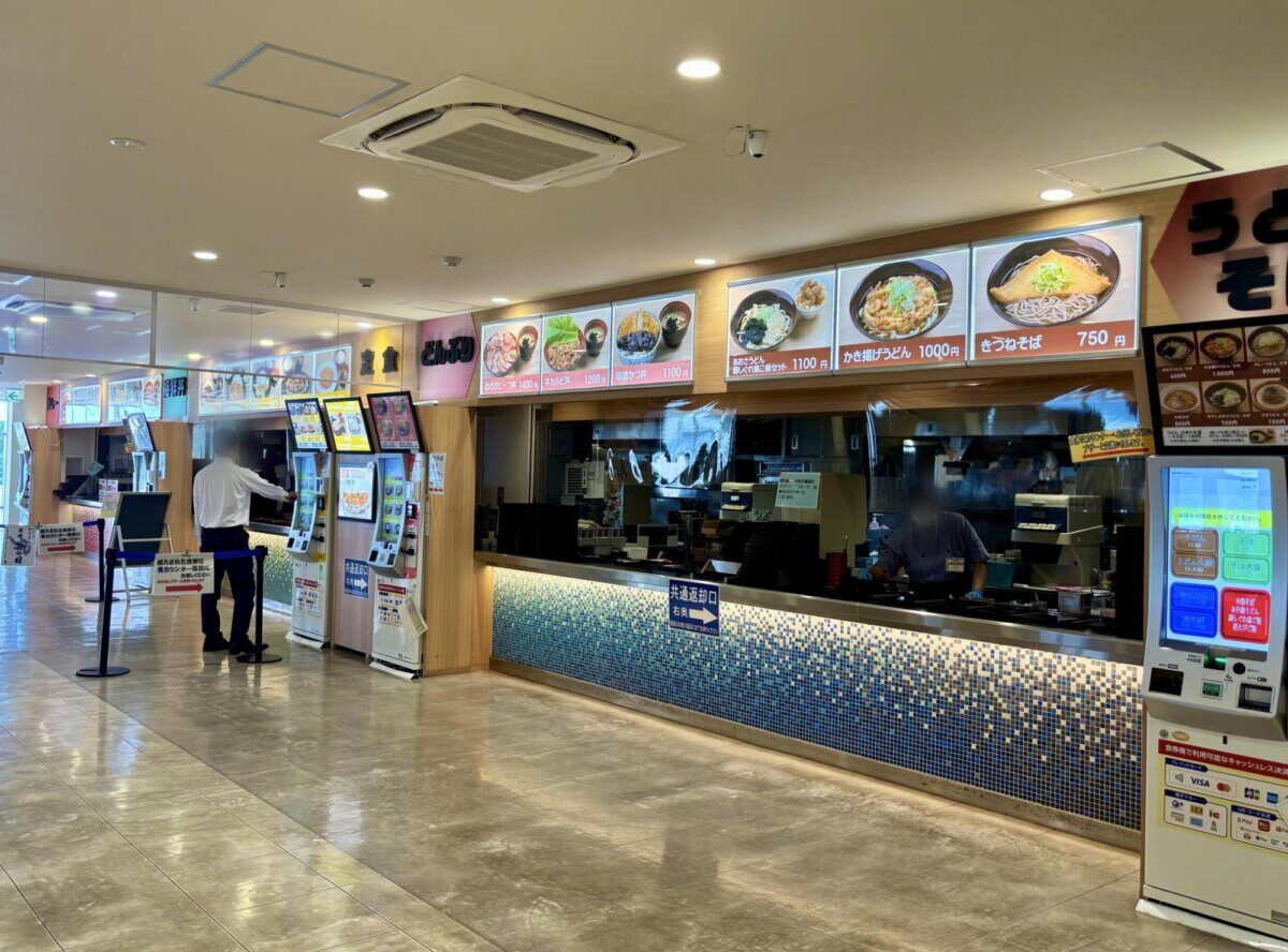 フードコートエリアには、うどん・そば、丼もの、定食、海鮮丼、うなぎ、カレーなど、豊富なメニューが勢ぞろい。選ぶ楽しさもあり、何を食べるかつい迷ってしまいます。