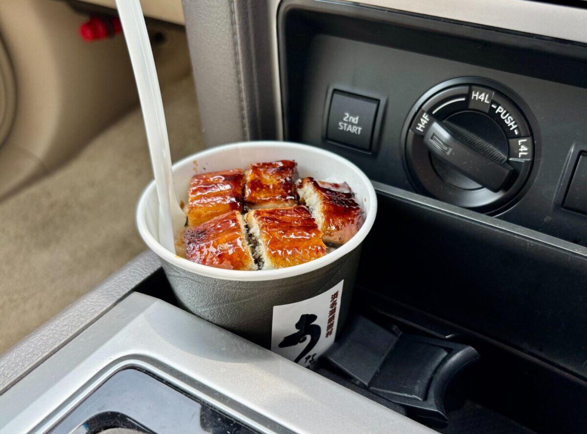 「カップ鰻めし」は車のドリンクホルダーにもちょうどいいサイズなので、ドライブのお供にもぴったりですね。