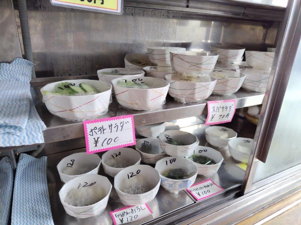 副菜も充実していて小鉢や揚げ物など好きなものをチョイスできるスタイル。食べたいものを自由に組み合わせられるシステムで利用者にとってうれしい仕組みです。