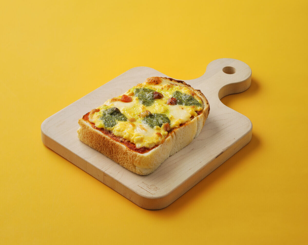 ふわっふわでもちっと食感の自家製食パンを使ったオリジナルピザトーストです。