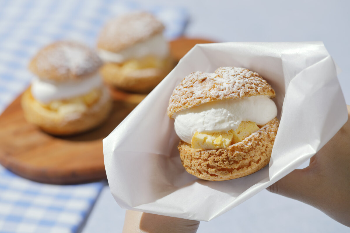 マスカルポーネクリームとカスタードクリーム、自家製チーズケーキがたっぷり使われたオリジナルシュークリームです。