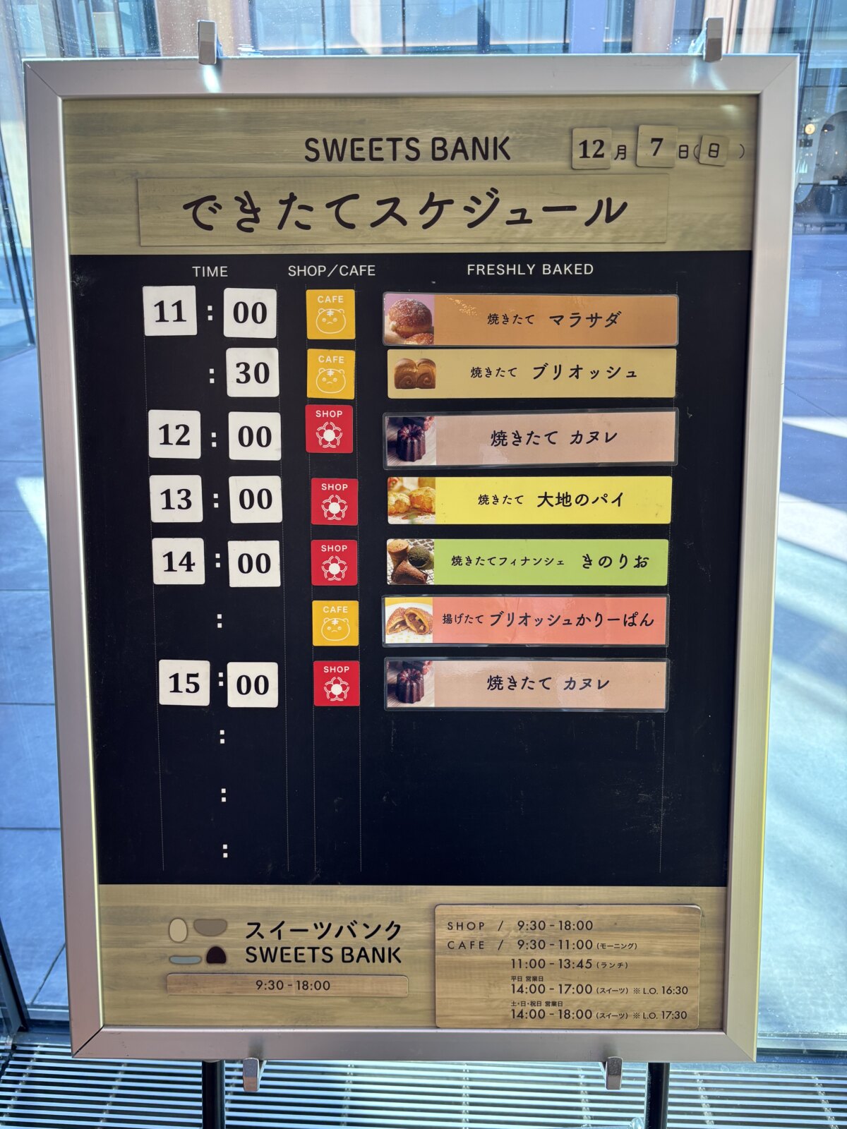 スイーツバンクでは、11時以降、1時間ごとに焼きたてのパンやスイーツが出来上がります。