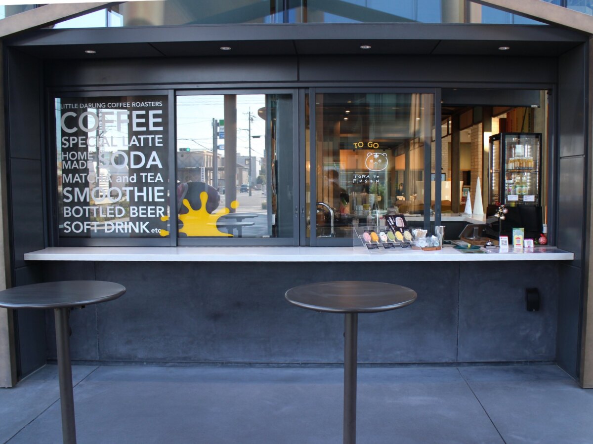 エントランスのイートインスペース、またはコミュニティスペース「ツノがたつ」でゆっくり味わえますよ。