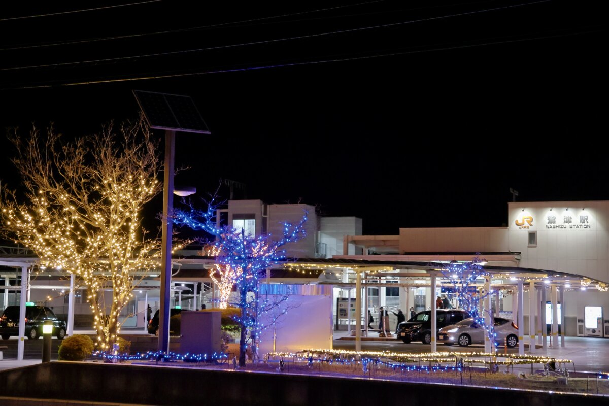 おすすめは、JR鷲津駅で降りて、徒歩0分で楽しめるイルミネーション「きらきらフェスタ in こさい」。