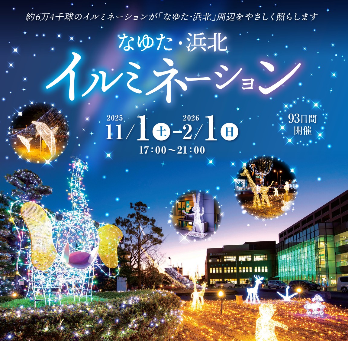 約6万2千球のイルミネーションが美しくきらめく「なゆた・浜北」のイルミネーション2025。