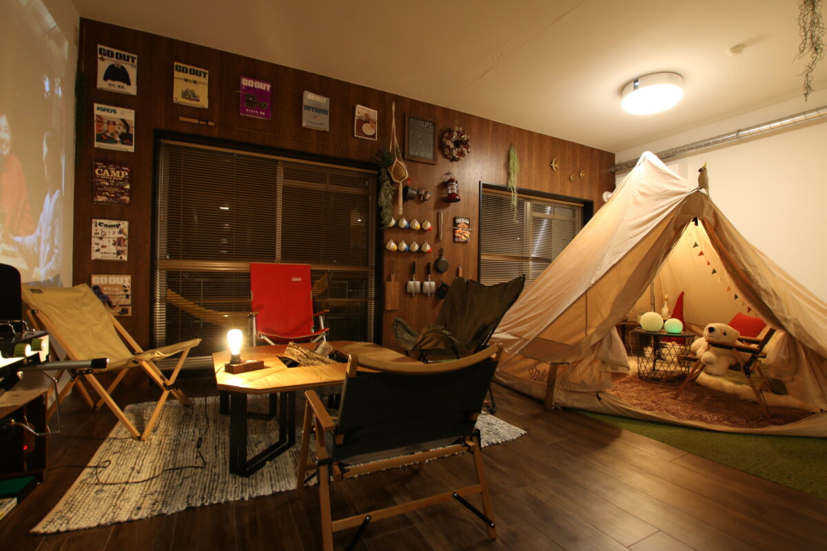 室内にいながら屋外キャンプをしているかのような設備や大きなテント、ボルダリングができる部屋など全国的にも珍しい部屋がたくさん。